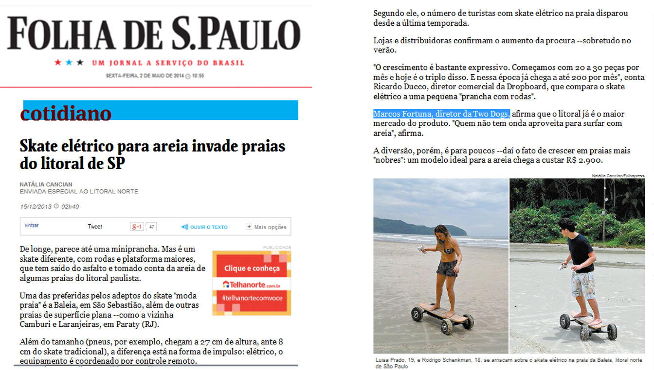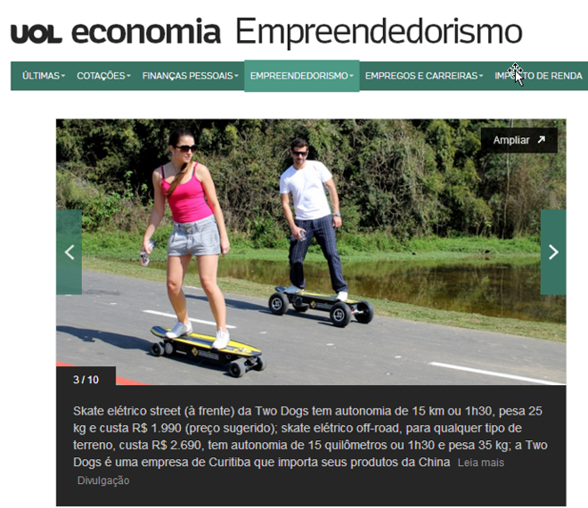 A Two Dogs é um empresa que trouxe ao Brasil os primeiros veículos elétricos, como o Skate, a bike, a scooter, por exemplo.